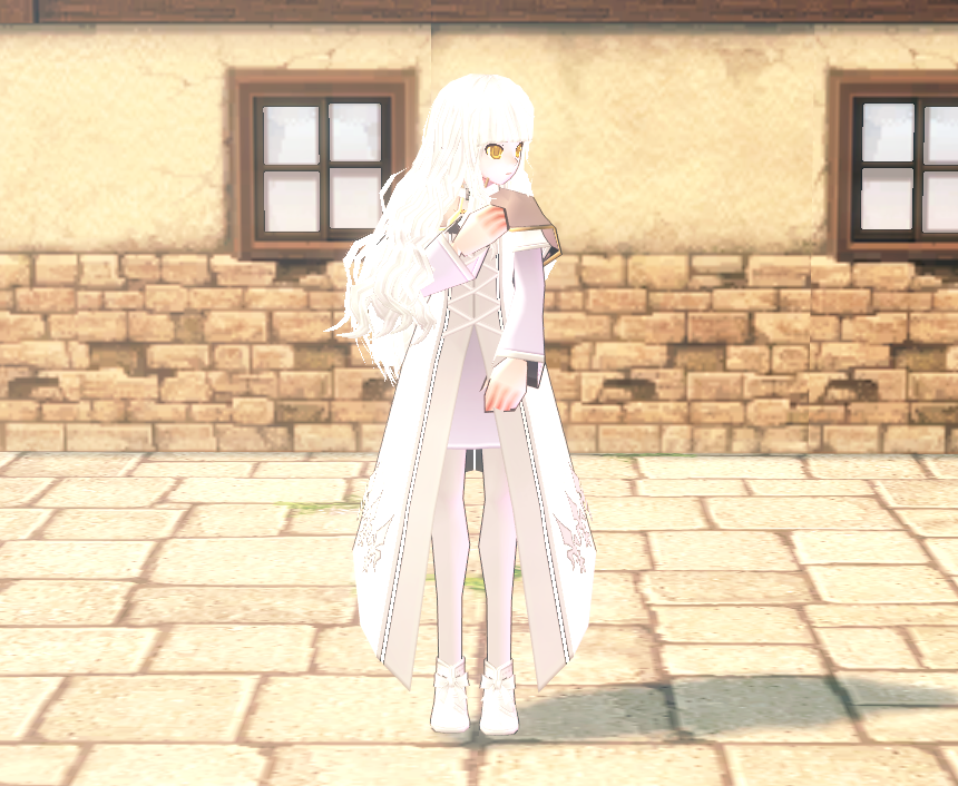 간단한 모션이 있는 의상입니다. 개인적으로 참 정성스럽게 만든 의장 같다고 생각하는데, 가격도 매우 저렴하면서도 사람들이 잘 모르는 의상이기도 합니다. '엘리네드 연금술사 정장'이라는 이름처럼 연금술사 관련 의장입니다. 기존의 연금술사 정장이 있는데, 여성용에 맞게 개선된 디자인이라고 할 수 있겠습니다.