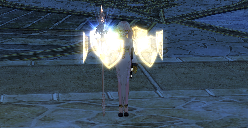 역시나, 로그오프 했더니 사라졌다. 지금 테스트 해보니까 [이신화 상태]에서 [실드 오브 트러스트] 사용하면 금색 방패가 뜨는데, 아마 렉 때문에 이펙트가 사라지지 않고 이렇게 보이나보다.