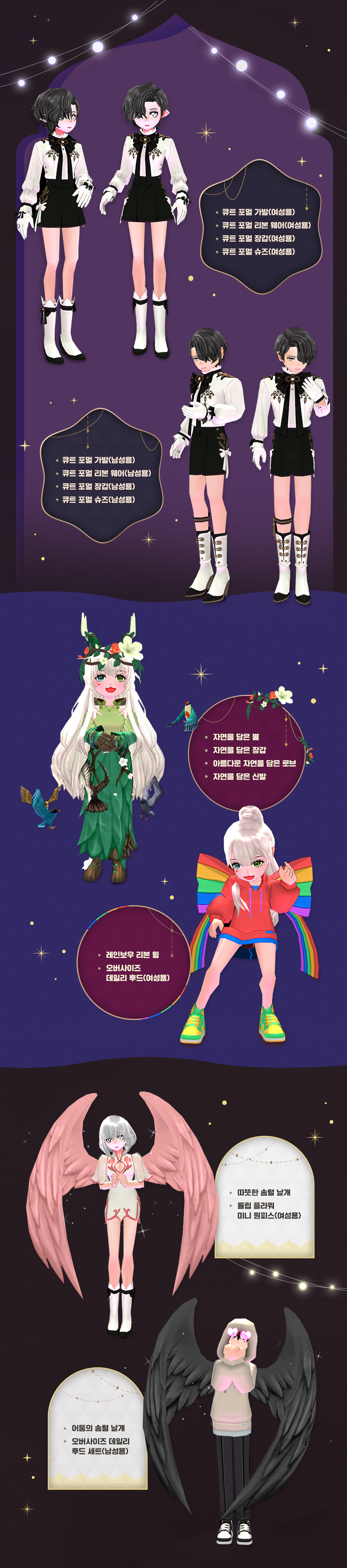 - 알리반 조의 보물 상자(의류) : 큐트 포멀 리본 웨어(여성용), 레인보우 리본 윙 등 다양한 아이템 중 1종을 서로 다른 확률로 획득할 수 있습니다.